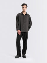 Dilengkapi kerah tegak, kantong di bagian kiri, serta lengan panjang dengan detail cuff, kemeja ini memberikan kesan elegan dan maskulin.