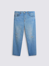 Robekan di permukaan jeans dilapisi kain dalam, menjaga kenyamanan sekaligus mempertahankan look yang berani.